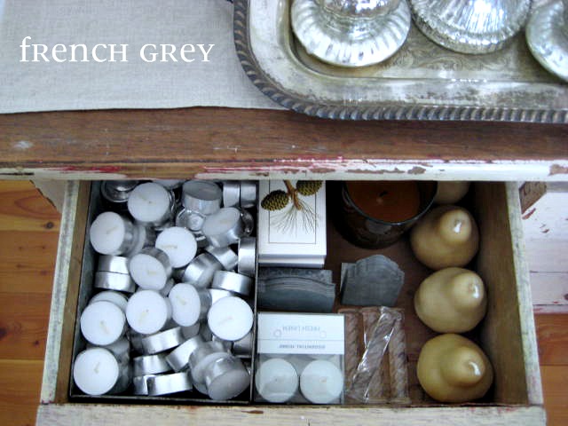 I have been using the dresser drawers to hold some items that I like to keep on hand for easy entertaining.