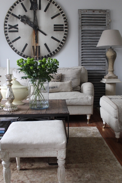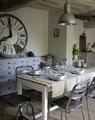 So many wonderful ideas here. I love those large clocks – what a statement they make – and the rustic table with the linen covered chairs are gorgeous. I also like the hanging light in the kitchens!! So many things.. will need to book mark this post 🙂