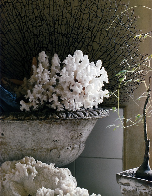 Coral looks stunning with this sea fan and amongst these gorgeous urns!