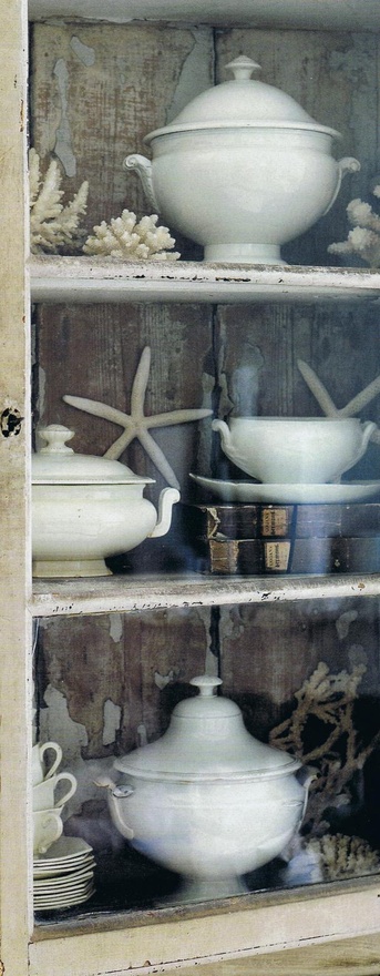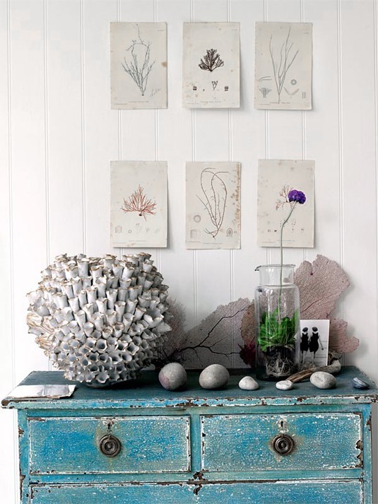 I like a subtle color palette of greys and whites, and have a tendency to collect objects within that palatte, and recently it has been things related to the sea.