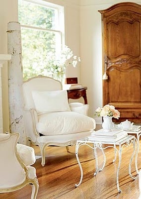 The warmth of wood can help things from looking kinda sterile, but still fits in with the tone on tone effect that I find so appealing!