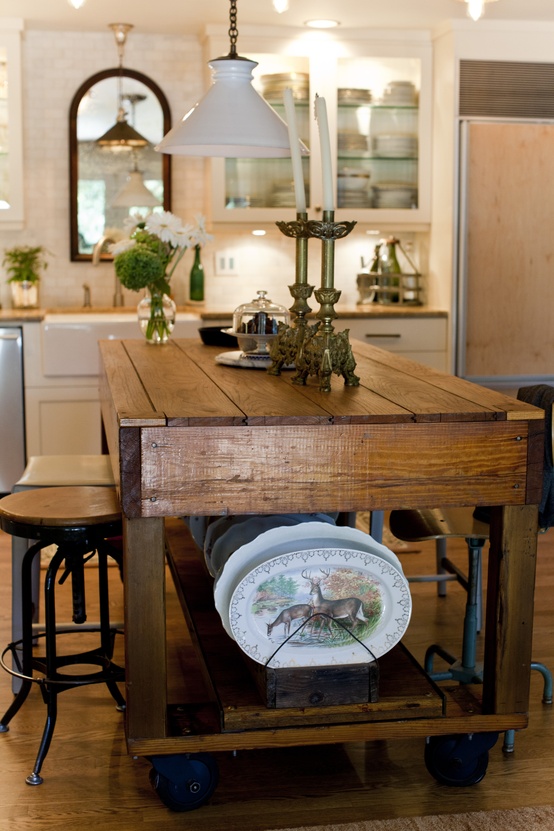 I would like all my wood finishes to have that washed grey look, however mine are more like this cool wood industrial cart island..