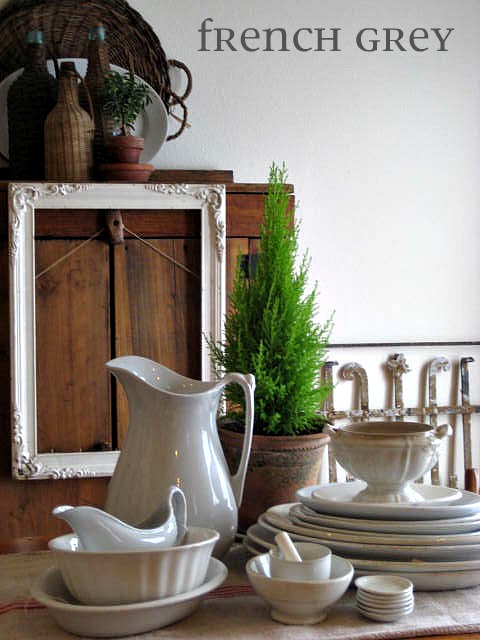 I found one of these round French bread/cheese boards and I am afraid it may have triggered a collection, nay, an obsession with the French farmhouse look!!