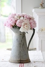 soft pink peonies in a French zinc pitcher (via Dreamy Whites) exudes simple style…