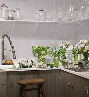Even a few shelves above a sink in the laundry room can become a place to pot or arrange flowers.